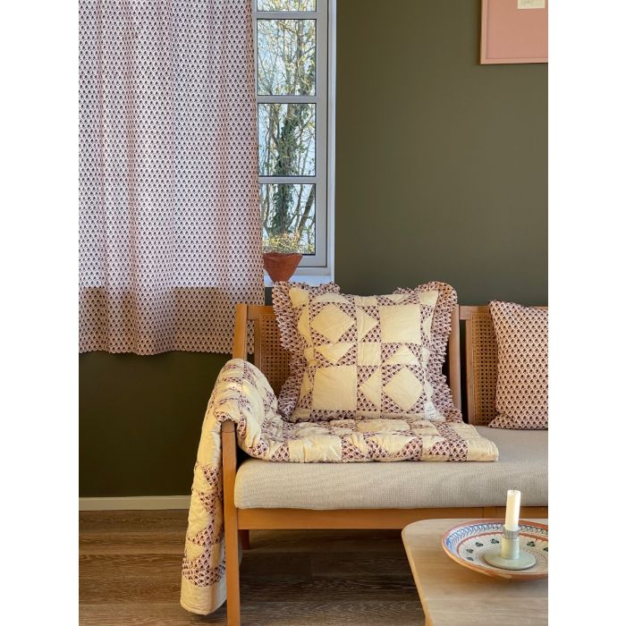 Et unikt patchworktæppe designet af Line Meldgaard Hviid og sirligt håndsyet i Indien af smukke, nøje udvalgte restmetervarer.