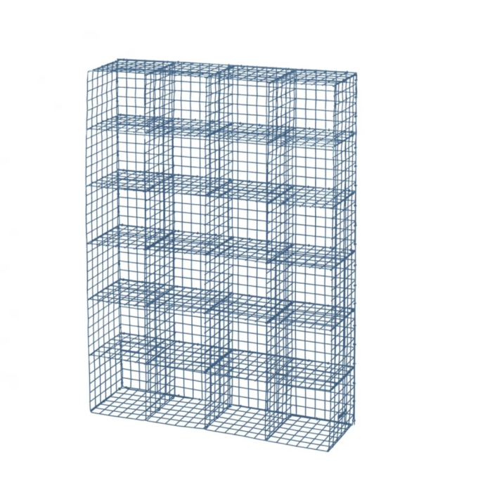 Das Design des Drahtes und des Regals verleiht ihm ein raues und industrielles Aussehen.