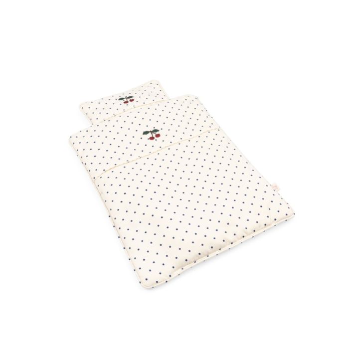 Das weiche Puppenbettwäscheset von Konges Sløjd ist aus 100% Baumwolle gefertigt und bietet der Puppe einen gemütlichen Schlafplatz. Das Set ist gepolstert und mit feinen Borten verziert, was ihm einen charmanten und durchdachten Look verleiht.