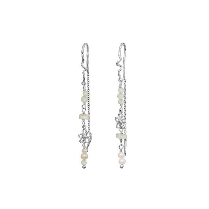 Die Alfrida Ohrringe fallen leicht vom Ohr wie sanfter Sommerregen. Eine feine Hommage an die süßen Erinnerungen, die in der lauen Brise des Mittsommers getragen werden.