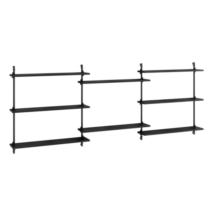 Dieses Set besteht aus individuellen Teilen, die anpassbar sind. Die Regale werden von 4 Keilen an Ort und Stelle gehalten, die es ermöglichen, die Position der Regale nach Bedarf anzupassen. Das Wandregal wird sowohl oben, unten als auch in jedem Beinintervall an der Wand befestigt, was dazu führt, dass das Regal gut an der Wand hängt.