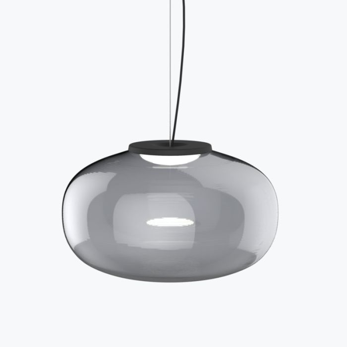 Schirm aus mundgeblasenem rauchigem Glas mit schwarz pulverbeschichtetem Stahlhalter