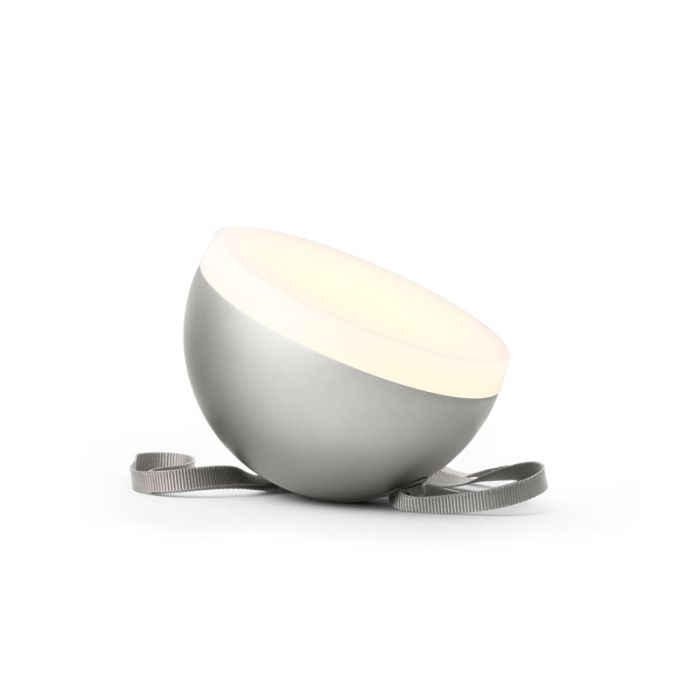 Die Sphere-Lampe ist ein skulpturales Objekt, das Sie überallhin mitnehmen können. Die tragbare Lampe hat eine geometrische Halbmondform und ist wasser-, staub- und stoßfest. Sie verfügt über ein Band, um die Lichtquelle zu halten oder aufzuhängen. Die gebogene Form liegt bequem in der Hand und ein integrierter Dimmer mit Speicherfunktion ermöglicht es, die Helligkeit anzupassen. Bewegen Sie die leuchtende Kugel je nach Bedarf im Haus herum und nehmen Sie sie mit auf den Balkon, die Terrasse oder Ausflüge in den Wald, an den Strand oder in den Park. Die stimmungsvolle Lampe eignet sich ideal für Outdoor-Veranstaltungen, die bis zum Einbruch der Dunkelheit dauern. Die Sphere Adventure Light hat eine Batterielebensdauer von 10 Stunden bei 100% und wird mit einem magnetischen Ladekabel geliefert.