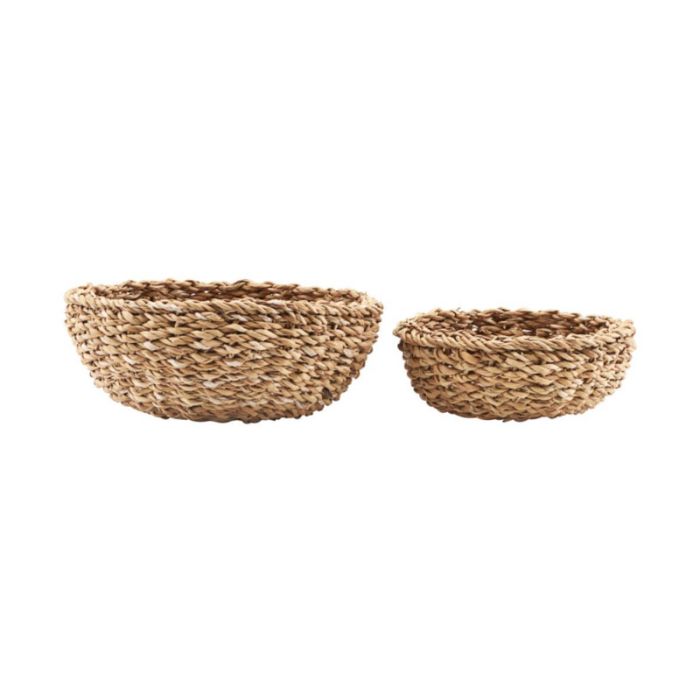Diese schönen Aufbewahrungskörbe von Nicolas Vahé heißen Bread. Sie eignen sich hervorragend in einer Küche, in der die Aufbewahrung von Obst, Brot oder Textilien ideal ist, um sie im Haus aufzubewahren. Die schönen Körbe sind aus einem hochwertigen Naturmaterial, nämlich Seegras, gefertigt. Die Körbe werden im Set von zwei Größen verkauft. Der kleinste Korb ist 6 cm hoch und hat einen Durchmesser von 18 cm, während der größte 9 cm hoch und 22 cm im Durchmesser misst.