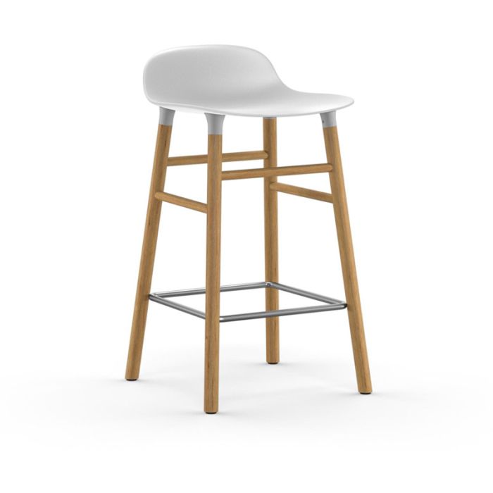 Der Barhocker wurde von Simon Legald entworfen. Das Design ist elegant und schlicht mit skandinavischem Look. Die Sitzfläche besteht aus Kunststoff und das Gestell aus Eichenholz.