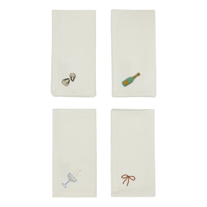 Dieses Set mit vier Neujahrsservietten ist mit charmanten Illustrationen verziert, die Ihre festliche Tischdekoration vervollständigen werden. Schaffen Sie eine zusätzliche festliche Atmosphäre für Ihre Neujahrsveranstaltungen mit diesen praktischen und eleganten Servietten, die einen verspielten Touch zu Ihren Feierlichkeiten hinzufügen.