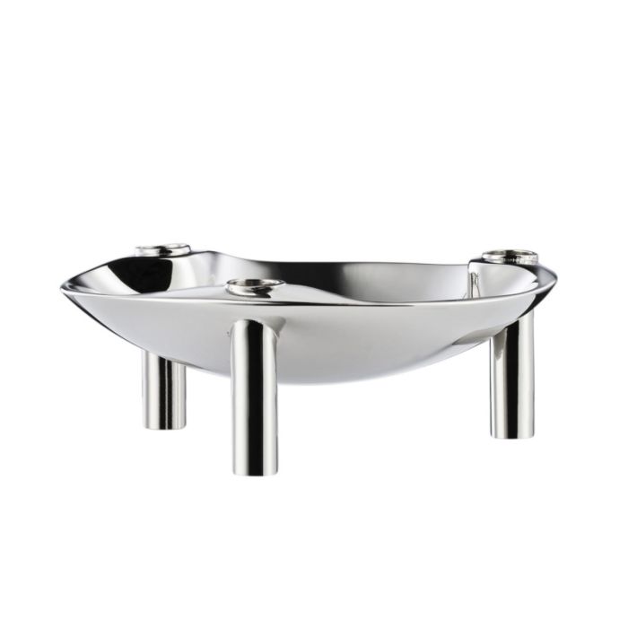 Die Schale ist aus verchromtem Stahl gefertigt.
